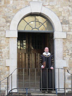 Tower, bereits ein Herr in historischem Ornat die Aufmerksamkeit der Wartenden