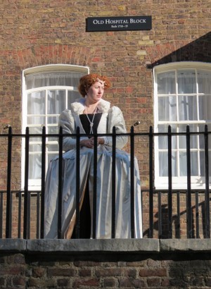 Kammerzofe, die Queen Anne gedient hatte und nun in breitem Londoner Dialekt