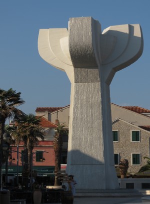 An einem wesentlich kleineren Gedenkstein wären wir vielleicht achtlos vorbeigegangen, hätte sich nicht eine Katze genau in seinem Schatten niedergelassen und ihren Kopf auf einen Blumenstrauß gebettet. Was es mit diesem Stein auf sich hat, erfuhr ich erst, als ich wieder in Deutschland war, aus dem Facebook-Post eines kroatischen Bekannten, der sich darüber empörte, dass ein Feuerwehrmann einen Rechtsstreit gegen den kroatischen Staat und die Stadt Šibenik verloren hatte. Noch während ich den verlinkten Zeitungsartikel las, dämmerte mir, dass all das, worum es darin ging, durchaus etwas mit dem fast unscheinbaren Stein in Vodice zu tun haben könnte.