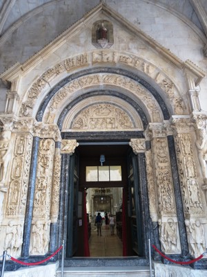 In Trogir war das für mich die Kathedrale. Eigentlich war diese, als sie im 13. Jahrhundert erbaut wurde, dem Heiligen Laurentius geweiht worden, jedoch hat ihm ein lokaler Heiliger, Johannes von Trogir, der bis 1111 Bischof von Trogir war und in der Kathedrale im 15. Jahrhundert eine eigene Kapelle erhielt, de facto den Rang abgelaufen. Ursprünglich eine romanische Basilika, war die Kathedrale im Laufe ihrer Geschichte so vielen Veränderungen unterworfen, dass man inzwischen auch Elemente der Gotik, der Frührenaissance und sogar des Barock findet.