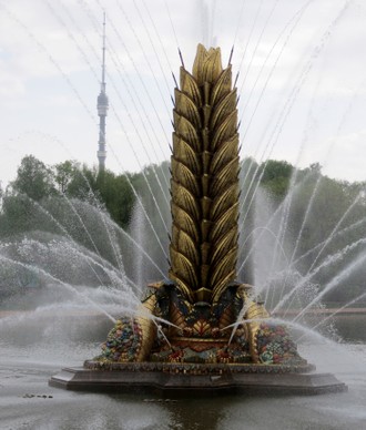 Wie habe ich mich vor zwei Jahren geärgert, als ich bei meinem damaligen Besuch in Moskau feststellen musste, dass der Springbrunnen „Goldene Ähre“ komplett angerüstet war! Immerhin hatte ich ihn auf der Allunionsausstellung schon oft gesucht und nie gefunden, und nun, da ich endlich davor stand, konnte ich ihn wieder nicht richtig fotografieren!