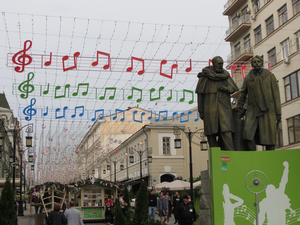 Wenn sich zwei Musikbegeisterte auf den Weg machen, kann sich meist mindestens ein Dritter darüber freuen, nämlich der oder die Künstler, die auf diese Weise ihr Publikum um immerhin zwei Personen erweitert sehen. In diesem Fall waren das Timur, Moskauer mit Leib und Seele, und ich, obwohl das beim Moskauer A-cappella-Frühling keineswegs nötig war, denn zumindest am Sonntag, dem letzten Tag des zwölftägigen Festivals, fanden sich vor jeder der unzähligen kleinen und großen Bühnen im Stadtzentrum unzählige Menschen ein und lauschten den Künstlern aus Nah und Fern. Diese Formulierung ist hierbei wirklich wörtlich zu nehmen, denn der Moskauer A-cappella-Frühling ist ein internationaler Wettbewerb.