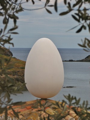 Prägnantestes Wahrzeichen des Hauses in Port Lligat dürften aber neben dem Baum, der gleichsam aus einem Fischerboot herauswächst, die überdimensionalen Eier sein, die einen bereits von Weitem vermuten lassen, dass sich unter dem Dach, auf dem eines von ihnen platziert ist, etwas Besonderes verbirgt, auch wenn es sich dasselbe nur den zum Haus gehörenden Taubenschlag bedeckt. Weitere Eier zieren den Garten, und dass eines von ihnen oben quasi aufgeschlagen und innen hohl ist, sodass man hineinklettern und sich darin fotografieren kann, passt zweifellos ins Bild.